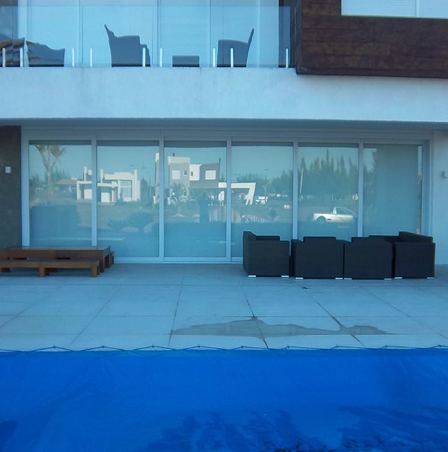 Porta Só Caixilhos de correr com seis folhas.